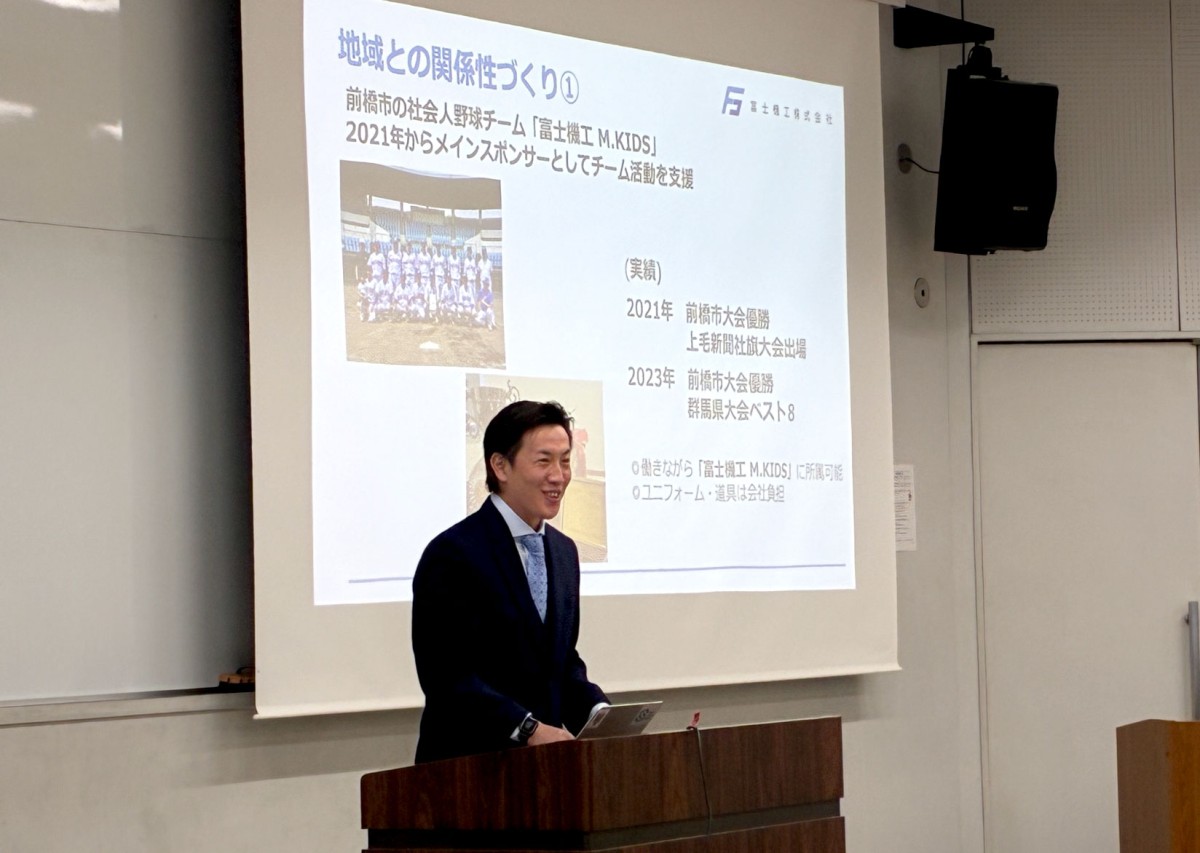 富士機工株式会社(本社:群馬県前橋市、代表取締役:須田 昂洋)は、1月22日(木)、関東学園大学経済学部経営学科にて、1年生を対象としたマーケティング授業に招待いただき会社紹介を行いました。